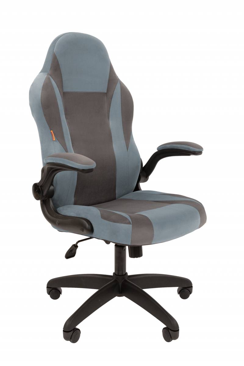 Кресло Chairman game 55 Россия голубой/серый велюр Т71/Т55 пластик черный